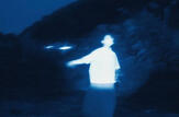 Double lobe piercings, septum ring, lip ring. An abstract smoke tattoo along the left side of his body in indigo ink.BACKGROUND :